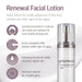 • Usage: The Renewal Facial Lotion is a hydrating lotion that reduces the appearance of fine lines and wrinkles. It contains the same active ingredients as Renewal Facial Cream but in a lighter formula.