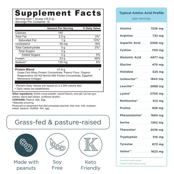 Ancient Nutrition Grass Fed Whey Protein Chocolate Peanut Butter 23g Protein 18 Servings