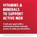 Details: Clinically Studied Multivitamin Performance Muscle Function Antioxidants - More antioxidant power than ever and over 30 clinically studied ingredients in every formula - all in smaller, easier-to-swallow pills. Men's Health Contains a clinically studied men's multivitamin shown to work better than a basic multivitamin. Helps support colon and prostate health.* Performance - Features beta-alanine, a high-efficiency muscle pH buffer, and carnitine, which helps use fatty acids as energy.* Muscle Function - Features branched chain amino acids to fuel muscles. Also supports muscles by providing essential electrolytes that may be lost during intense exercise, including calcium, which plays a role in mediating muscle contraction.* Antioxidants - Packed with antioxidants to help fight free radicals that can be produced during your workout.* ^In a randomized, double blind, placebo-controlled study of 112 healthy volunteers, subjects taking the GNC vitamin and mineral blends for six weeks experienced significant improvements in serum levels of certain key ingredients compared to a placebo and a leading multivitamin formula based upon multivariate statistical analysis of a group of B vitamins (thiamin, niacin, riboflavin, pantothenic acid, biotic, folic acid and vitamins B-6 and B-12) and key antioxidants and carotenoids (a group of beta-carotene, alpha tocopherol, selenium, lutein and lycopene). Statistical improvements in SF-36 Vitality and Mental Health scored were also observed compared to placebo.